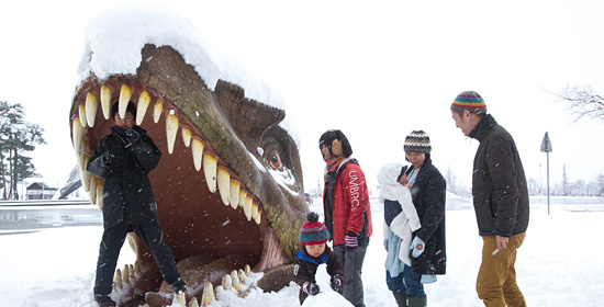 ユニークな恐竜遊具やカラフルな恐竜モニュメント、ブロンズ像が点在。スナップにもおすすめです。